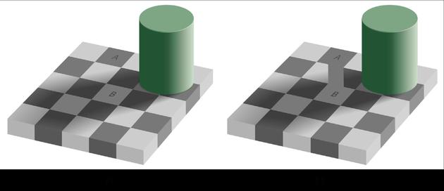 每年在佛罗里达召开的视觉科学年会(VSS, Visual Science Society)上,都会评出当年最出色的十大视觉错觉。许多视觉科学研究者、神经科学爱好者、平面设计艺术家蜂拥而至,热闹非凡。 俗话说:眼睛是心灵的窗口。人们常说眼见为实,用来形容一个物体或者一件事情只有亲眼看见了才相信它是真的。但是却有那么一类图形长期流传于网络、报刊,能够瞒天过海般的骗过你的眼睛,让你觉得自己似乎变傻了。即便是你知道了其中的玄机,却也无论如何也无法说服自己的眼睛,它们就是视觉错觉。 下面让我们欣赏一下几个惊艳的视觉错觉。 图1中呈现的棋盘格亮度错觉中,A、B两块区域的亮度实际上是相同的,但是将它们放置于不同的图形环境下,人们会依据视觉经验感觉到不同的亮度。同样的亮度的物体,呈现在阴影中的时候,我们会感觉到它更亮一些,而在光照丰富的环境中,我们会感觉到它更暗一些。 图1棋盘格亮度错觉。如图A中,A,B两块区域的颜色看起来有很大的亮度差异,但是将两块区域连通起来之后,会发现两块区域的亮度是一致的。(图片来源:https://commons.wikimedia.org/wiki/File:Grey_square_optical_illusion.svg) 图2水彩错觉。人们会感觉到被黄色线条包围的部分的颜色要比周围白纸的颜色更黄一些,实际上二者的颜色是相同的。(图片来源:https://en.wikipedia.org/wiki/File:PinnaScholarpediaFig1.png) 图 3 著名的Pinna 旋转运动错觉。当人注视图片中心黑点,头部靠近(或远离)屏幕时,会很明显地感受到两个圆环在分别以逆时针和顺时针(或顺时针和逆时针)方向旋转,但事实上圆环并没有任何物理移动。(王伟组 绘制)是我们的眼睛出问题了吗? 首先要简单介绍一下我们的视觉系统:如图6所示,我们的视觉系统由暴露在外的眼球,视神经和视觉皮层所组成。我们的眼睛是外部图像进入视觉系统的第一个环节,光学信号在视网膜上被转换成电信号,通过视神经传入视皮层的神经元海洋之中。眼球是一部全自动聚焦成像图像采集系统,在性能上超越目前世界上任何一部数码相机。眼球上即使很小的损伤都会引起严重的视力问题,最普遍的就是近视眼、老花眼。还有些类似错觉感觉的疾病,如有些人眼睛由于玻璃体浑浊而出现‘飞蚊症’,还有些人由于视网膜上缺乏相应的感光色素细胞而出现‘色盲’或者‘色弱’。这些病理性的异常都会对患者的正常生活产生严重的影响。 上面的这些错觉图形,一开始就是视力正常的人们所设计出来的,随后正是由于大家觉得这些图形轻而易举的就欺骗了他们的眼睛而引起广泛兴趣,并不断传播开来。而眼睛出现损伤或者发育异常,往往导致严重的视觉感知障碍。因此,从统计学意义上来讲,我们的眼睛是正常的。让我们更加精确的定义一下视觉错觉:人们的主观感觉与图形的物理参数不匹配的现象。这种感觉与实际不匹配的现象,在绝大多数情况下,并不会对事主的生活造成不良影响。 图4 两种由于眼部病变导致的视物不真。 A 右图为色盲患者眼中的世界。B 飞蚊症患者由于眼中出现病变,导致看到的图像中有类似运动的悬浮物体。 图5人的视觉系统:人眼的解剖结构以及视皮层的信息流(孙新尧 绘制,修改自https://commons.wikimedia.org/wiki/File:Schematic_diagram_of_the_human_eye_zh-hans.svg)大脑的bug? 既然我们的眼睛是好的,视觉通路又都是好的,那么为什么在错觉图形的条件下我们无法真实的感知外部图像呢?难道这是我们的视觉皮层在进化中出现的漏洞?关于这个问题,目前还没有一个统一的解释。我们已知外部世界的图像通过眼睛的折光系统投射到视网膜上这一步骤是十分忠实于光学原理的。但是当外部图像在视网膜上被转换成电信号并进入大脑之后,皮层对于图像信息进行了进一步的解读。这种解读模式,在经过了亿万年的进化之后,必然是以一种最‘接地气’、最‘懂’这个世界的方式进行的。 比如由于红绿拮抗神经元的存在,导致红花衬托在绿叶上面格外鲜艳、红橙色的果实在自然界中占据大多数;由于我们的大脑会存在‘填补效应’,一个人的身体被遮挡住了一部分,我们并不会认为这个人的身体少了一块;由于大脑中存在专门负责面部识别的脑区,人们对于脸部识别更加敏感。自然界中的图像,由于受太阳照射、重力、水流、气流等因素的影响,总是以一种特定的形态存在,这也将视觉系统塑造成了擅长于处理这类视觉图形。而错觉图形都是人们通过精心构思设计出来的,在自然界中几乎很少存在这样的图案,而我们的视觉系统作为一种进化的产物,初次遇到这样的图形会用它固有的方式去理解,就会出现类似‘理解偏差’的现象,是我们的大脑对于图像的一种固有信息提取方式在遇到新情况下的体现,也可以理解成为一种大脑进化不够完美而出现的bug。 视觉错觉现象是好是坏? 由于视觉错觉图形在自然界条件下极少存在,一般也不会影响人们的生活,因此这种现象并没有好坏的属性,它只是视觉系统基本运作方式的本能体现。 视觉错觉现象有什么用? 视觉错觉现象的应用涉及人们生活、艺术、建筑设计的方方面面。如果一个人的身材比较胖,他可以穿竖条纹的衣服来使自己显得更‘瘦’一些,一些室内设计师运动错觉效应和空间透视等原理将室内设计的更加具有空间感。还有一些艺术家使用大量的错觉轮廓图形来使自己的作品更加具有视觉冲击力。 