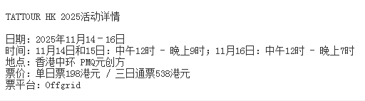 TATTOUR HK 2025 打造跨国界纹化盛宴 · 三天嘉年华融合艺术、音乐与美食