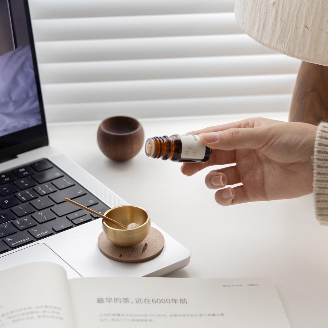与颂钵的灵动共振呼应,扩香木则诠释了另一种沉静的陪伴。精选极密黑胡桃木,造型圆润,无漆无蜡,天然肌理能悠长锁存精油,持久扩香。滴入风吟竹隙精油,清冷竹韵徐徐弥漫于四周空气,让一缕悠长的宁静,常驻于你的书桌边与床头,成为触手可及的疗愈日常。