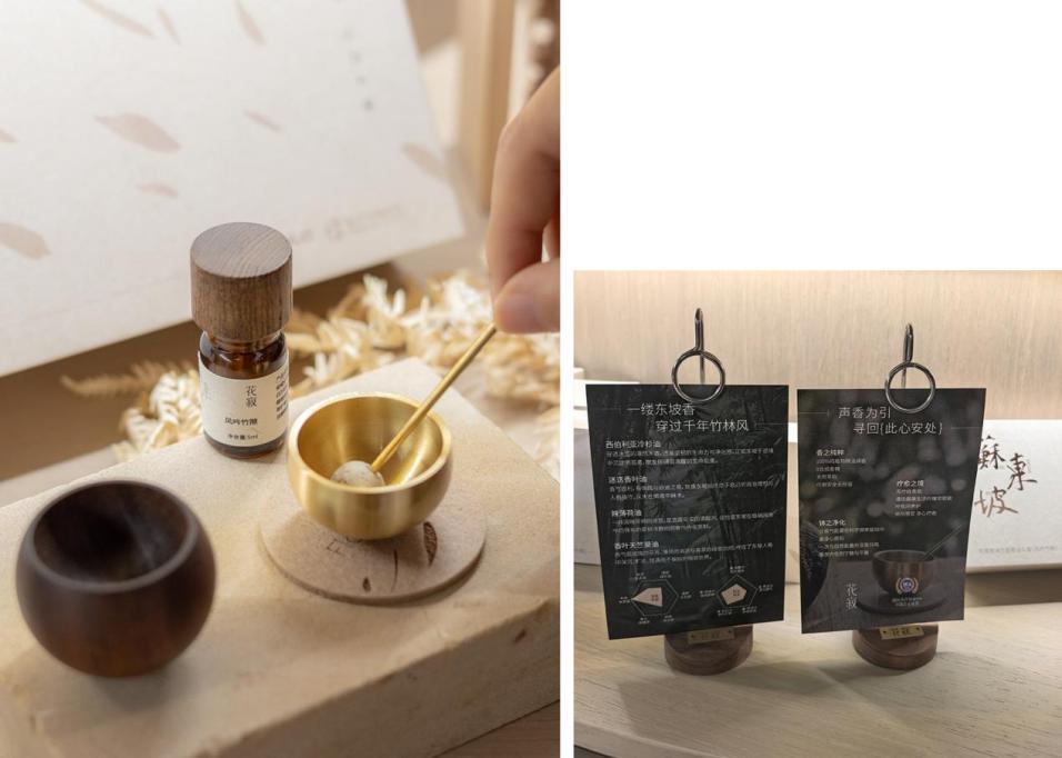 「音钵疗愈精油礼盒」将东坡的风骨、越剧的韵味与竹林的清幽,织就一场身心可栖的东方疗愈,以产品为语言,用一缕精油之香,复刻东坡的竹林意趣;以一声颂钵清音,回荡千年的旷达心境。