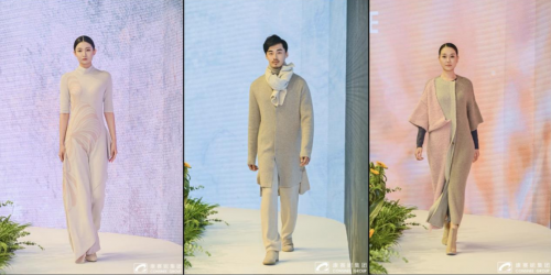 时尚之夜,康赛妮联合中国针织研发中心主任、北京服装学院教授郭瑞萍为大家带来一场以“桃花源记”为主题的时尚走秀,运用羊绒、羊驼毛、马海毛,呈现了“迷·遇·喜·归”四大主题的针织服饰,暗香缱绻,氤氲芳华,光阴流转,繁华深处尽是桃源。天然的纤维,自然的色彩, 纱线与光影邂逅于这场视觉盛宴中,让大家尽享世界高端天然纤维的美丽与奢华。