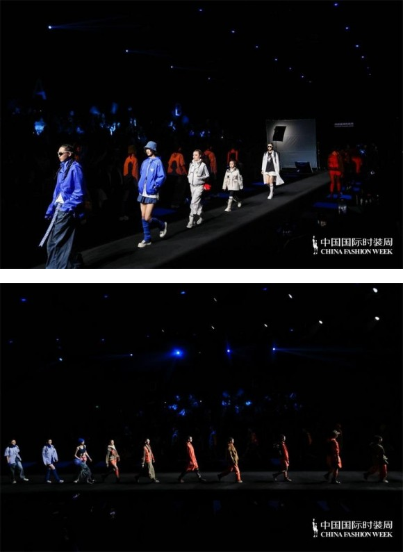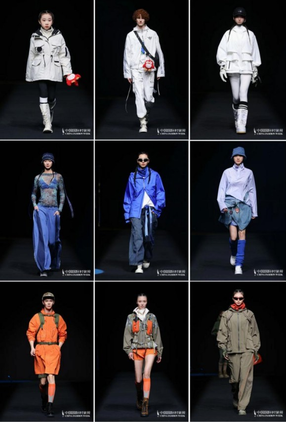 本次服装设计使用的面料应用了再生涤纶、莱赛尔、生物基等环保纤维,将经典牛仔蓝、迷彩色、橙色、白色等丰富颜色碰撞融合,让经典牛仔装具备高色牢度与挺括的时尚版型,为轻户外套装赋予防水性与亲肤感等多重功能,打造街头活力与都市休闲兼具的丰富风格,勾勒出跨场景穿搭的时尚美感。