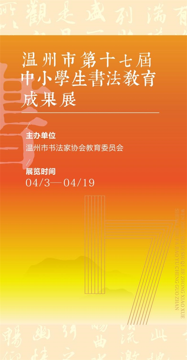 温州市第十七届中小学生书法教育成果展,既是对我市书法教育成果的集中展示,也是传承中华优秀传统文化的生动实践。展览旨在锤炼学生的书写功底,涵养审美素养,厚植文化底蕴,为温州书法事业的薪火相传与持续发展注入新生力量。