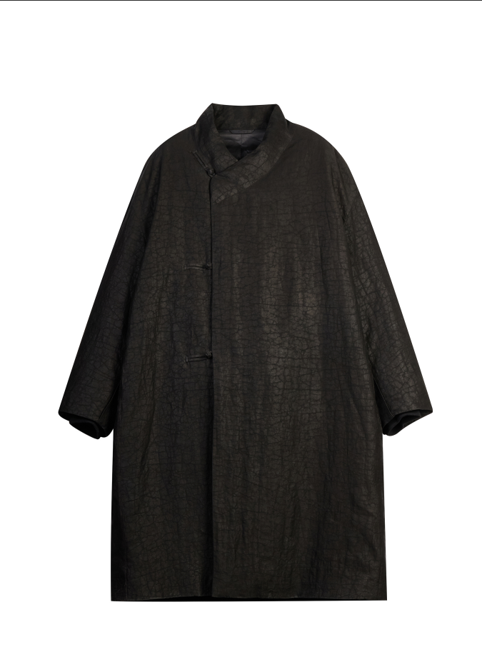 汉袍改良香云纱羽绒服将东方传统汉袍与现代羽绒完美融合,延续汉袍宽大廓形,对各类身形展现包容之态,交错领型巧妙修饰颈部线条,赋予穿着者松弛自在。外层选用非遗香云纱材质,流露出自然古朴的质感与东方含蓄低调的贵气,内充100%白鹅绒,轻盈且保暖,让温度与质感并存。