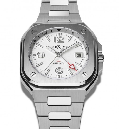 精致修饰 BR 05 GMT White以41毫米精钢表壳现身,抛光及磨砂相间。时针,分针,数字及时标经Superluminova夜光处理,无论日夜皆清晰易读。BR 05系列配蓝宝石玻璃表背,透视机芯以及跑车轮圈为灵感的上链摆陀等结构。 Bruno Belamich总结说:「我们的顾客大多喜欢日历功能,所以表盘3时位置亦设有日历窗。」精钢链带与表壳一气呵成,磨砂链带只有中间链节部份抛光。 这表款亦可配更有运动风格的橡胶带,及更具有吸引力的价格。