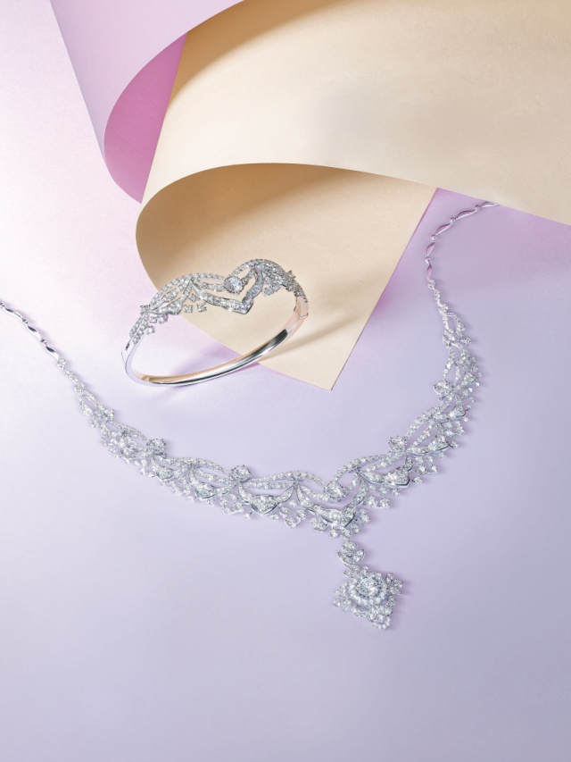 除钻石首饰外,蕴含华人传统祝福意义的黄金首饰也是钟嘉欣女士十分喜欢的 钟嘉欣女士同款六福珠宝「幸福云彩」钻石首饰套装